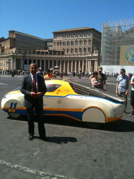 Venerdì 4 maggio Solaworld ha invitato il Presidente della Fondazione UniVerde, Alfonso Pecoraro Scanio, a vedere di persona la Solarcar in Piazza San Pietro in Roma.
