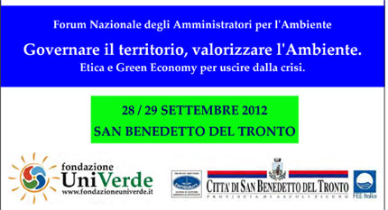 la Fondazione UniVerde e il Comune di San Benedetto del Tronto hanno organizzato il 28 e 29 settembre pp. vv. presso il Palariviera di San Benedetto del Tronto il Forum Nazionale degli Amministratori per l’Ambiente.