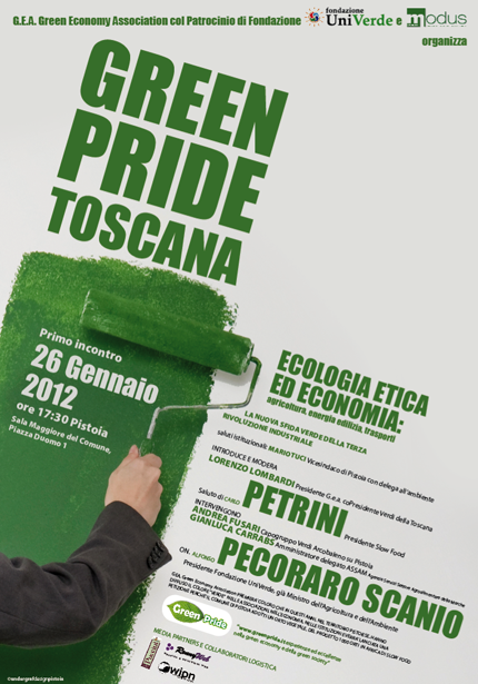 Giovedì 26 gennaio ci sarà il primo incontro Green Pride Toscana: Ecologia etica ed economia per raccogliere storie ed esperienze sostenibili nel settore dell’agricoltura, dell’energia, dell’edilizia e dei trasporti realizzate dai Verdi, dalle associazioni e dal mondo della Green Economy.